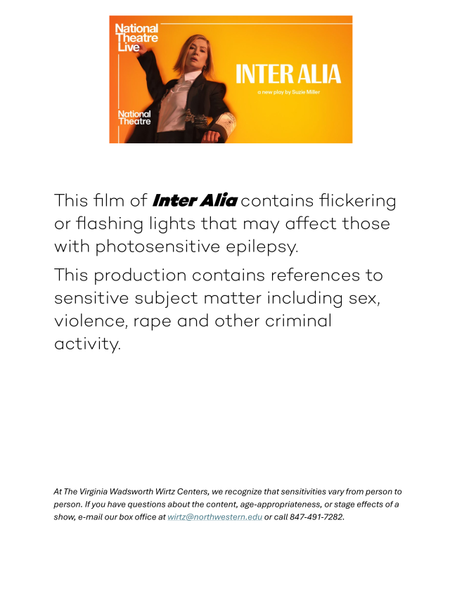 At The Virginia Wadsworth Wirtz Centers, we recognize that sensitivities vary from person to person. If you have questions about the content, age-appropriateness, or stage effects of a show, e-mail our box office at wirtz@northwestern.edu or call 847-491-7282.